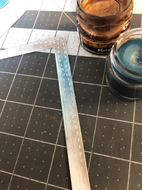 4. Using the metallic waxes, rub into the edge of the frame on the top right hand corner. Rub well to spread the colour evenly and leave to dry.