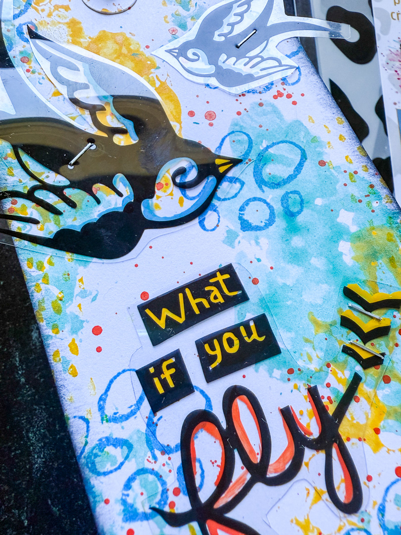 - Distress Paint: Mustard Seed, Peacock Feathers, Salty Ocean, Ripe Persimmon