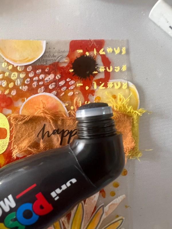 14. To give the final touch with Mop’R Posca Black Marker, I make three large black spots and take the opportunity to make small black splashes.