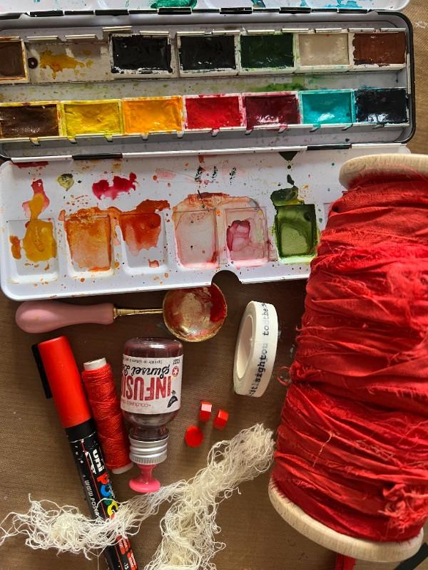- Red thread and some white cotton thread