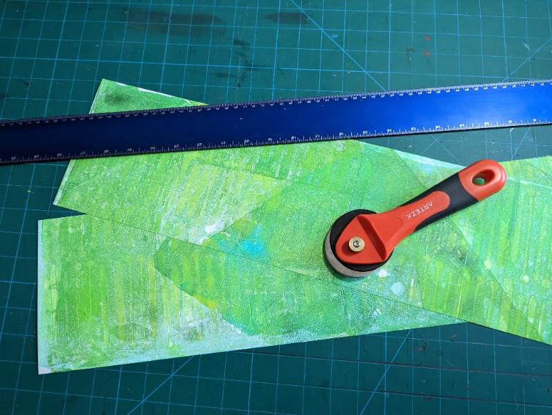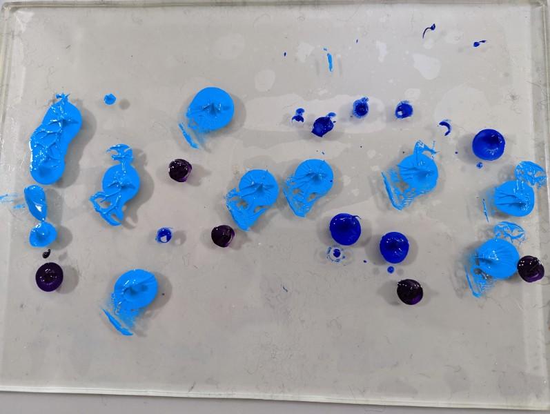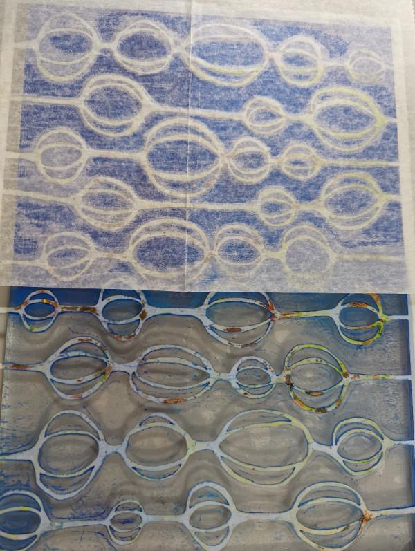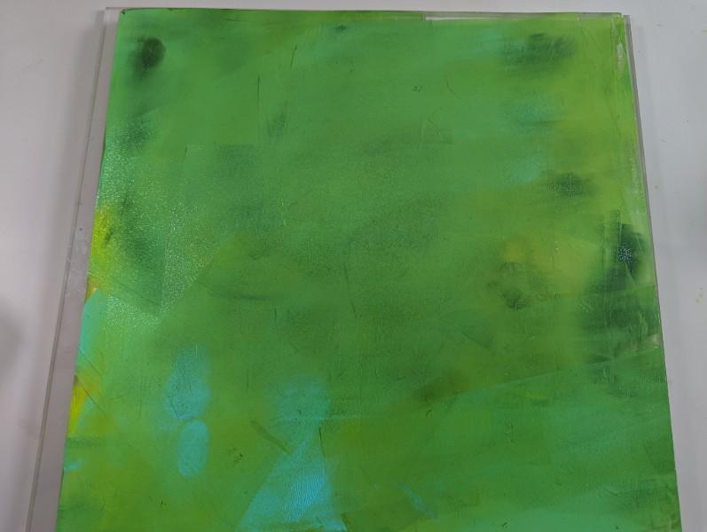 Project Description: . Decorate 12 x 24 Craft Plastic using gel plate mono prints. Layering abstract