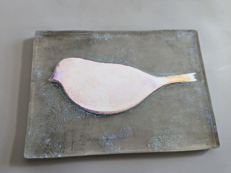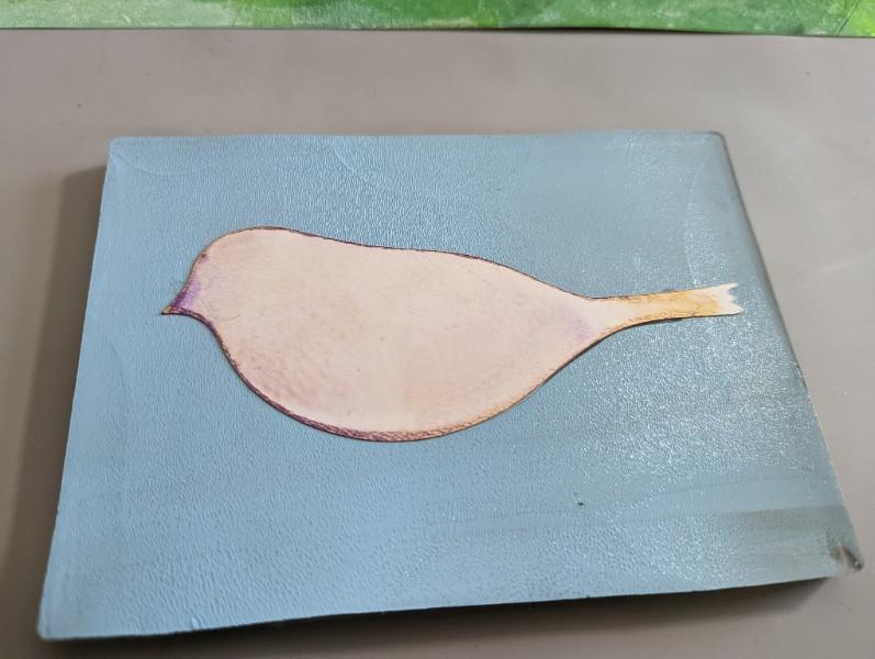 from a sheet of White Craft Plastic. After color was added to the plate, the bird motif was placed