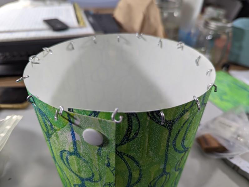 5. Once dry pop fasteners were used to close the shade’s cylindrical shape. These add an interesting