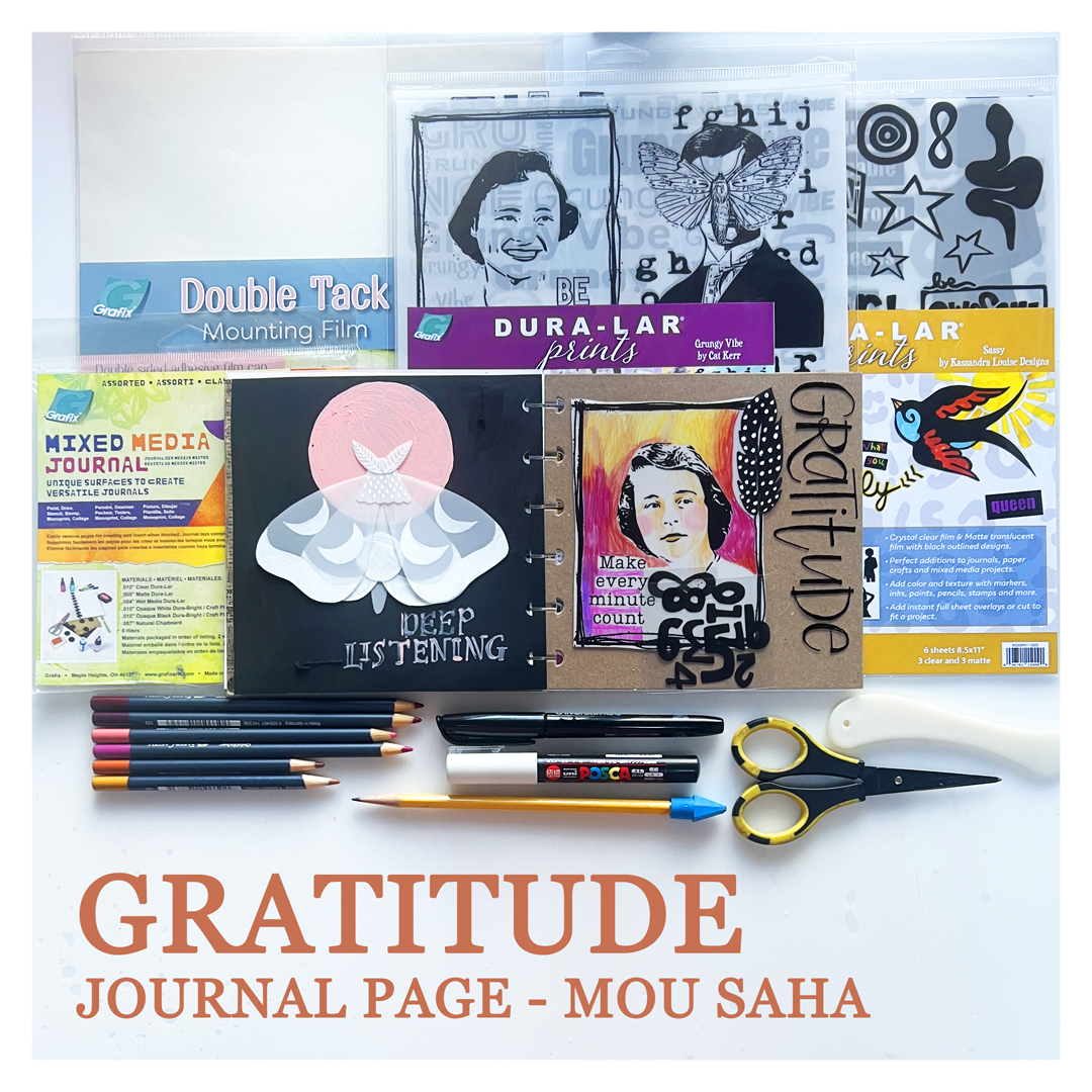 Project Description: Create something beautiful today like this beautiful gratitude journal page made with Grafix Mixed Media Journal, Dura-lar Prints and Double Tack!