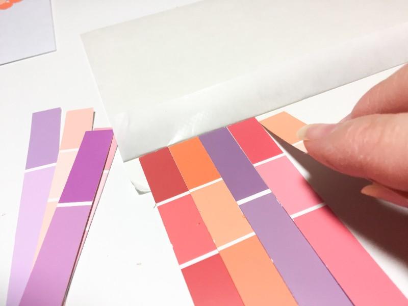 - Gather all the paint chip strips you cut and lay them out with colors alternating as you like.